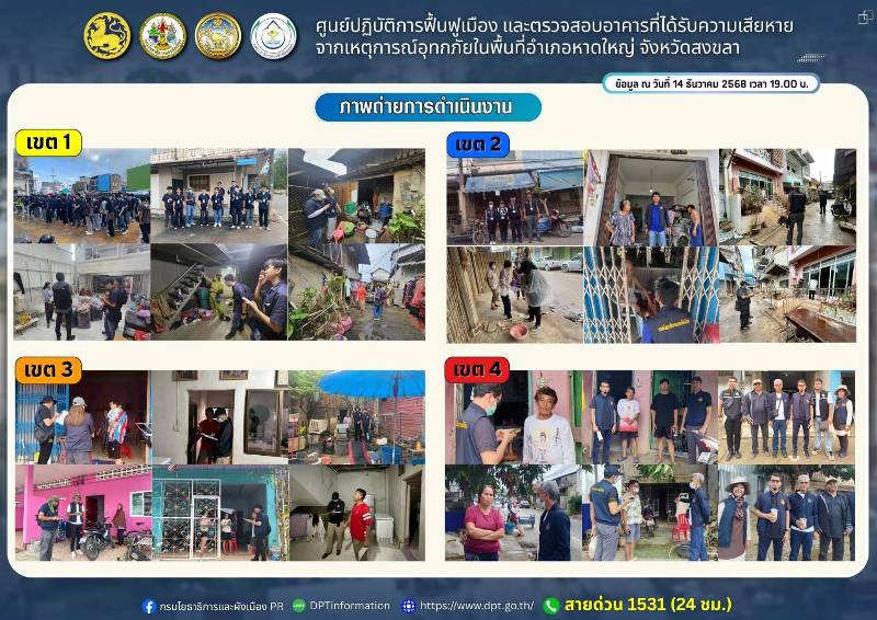 (กรุงเทพมหานคร/สงขลา) – กรมโยธาธิการและผังเมือง (ยผ.) ประสบความสำเร็จ ร่วมเป็นส่วนหนึ่งในการปิดภารกิจฟื้นฟูเมืองหาดใหญ่ จ.สงขลา วันที่ 14 ธันวาคม 2568 เวลา 10.00 น. นายพงษ์นรา เย็นยิ่ง อธิบดีกรมโยธาธิการและผังเมือง มอบหมายให้ นายเกิดศักดิ์ ยะโสธร รองอธิบดีกรมโยธาธิการและผังเมือง ในฐานะประธานศูนย์ปฏิบัติการฟื้นฟูเมือง ฯ (ส่วนหน้า) พร้อมด้วย นายไมตรี สรรพสิน โยธาธิการและผังเมืองจังหวัดสงขลา เข้าร่วมการประชุมโดยมี นายภาสกร บุญญลักษม์ รองปลัดกระทรวงมหาดไทย เป็นประธานการประชุมกองบัญชาการฯ (ส่วนหน้า) สงขลา นายรัฐศาสตร์ ชิดชู ผู้ว่าราชการจังหวัดสงขลา นายชัยรัตน์ แก้วเพียงเพ็ญ รองอธิบดีกรมป้องกันและบรรเทาสาธารณภัย เข้าร่วม ณ ห้องประชุมต้นปาล์ม ศูนย์ป้องกันและบรรเทาสาธารณภัย เขต 12 สงขลา โดย นายศักดิ์ดา วิเชียรศิลป์ รัฐมนตรีช่วยว่าการกระทรวงมหาดไทย เป็นประธานการประชุมกองบัญชาการป้องกันและบรรเทาสาธารณภัยแห่งชาติ (กอปภ.ช.) นายชัยวัฒน์ ชื่นโกสุม รองปลัดกระทรวงมหาดไทย นายธีรพัฒน์ คัชมาตย์ อธิบดีกรมป้องกันและบรรเทาสาธารณภัย นางสาวชัชดาพร บุญพีระณัช นายสหรัฐ วงศ์สกุลวิวัฒน์ รองอธิบดีกรมป้องกันและบรรเทาสาธารณภัย เข้าร่วม ณ ห้องประชุม 1 อาคาร 3 ชั้น 5 กรมป้องกันและบรรเทาสาธารณภัย (ปภ.) และมีการเชื่อมโยงผ่านระบบสื่ออิเล็กทรอนิกส์ มายังพื้นที่จังหวัดสงขลา รวมถึงผู้แทนจากหน่วยงานที่เกี่ยวข้องและผู้แทนจากหน่วยงานการสนับสนุนการปฏิบัติงานในภาวะฉุกเฉิน (สปฉ.) ทั้ง 18 ส่วนงาน เข้าร่วมประชุม เพื่อสรุปผลการปฏิบัติงานให้ความช่วยเหลือและเยียวยาผู้ประสบภัยในพื้นที่ภาคใต้ พร้อมประกาศลดระดับการจัดการ สาธารณภัยเป็นภัยขนาดกลาง (ระดับ 2) ส่งคืนพื้นที่ให้จังหวัดสงขลาเพื่อให้การทำงานฟื้นฟูพื้นที่ประสบภัยเป็นไปอย่างต่อเนื่อง