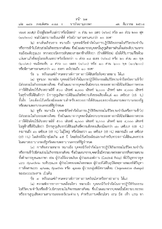 วันที่ 15 ธันวาคม 2568 นายอัครา พรหมเผ่า รัฐมนตรีว่าการกระทรวงการพัฒนาสังคมและความมั่นคงของมนุษย์ (รมว.พม.) เปิดเผยว่า ปัจจุบัน คนพิการที่มีบัตรประจำตัวคนพิการ 2,261,154 คน คิดเป็นร้อยละ 3.34 ของประชากรทั้งประเทศ (ข้อมูล ณ วันที่ 31 ตุลาคม 2568) ซึ่งกระทรวงการพัฒนาสังคมและความมั่นคงของมนุษย์ (พม.) โดยกรมส่งเสริมและพัฒนาคุณภาพชีวิตคนพิการ (พก.) มีความมุ่งมั่นในการขับเคลื่อนเรื่องการส่งเสริมให้คนพิการและครอบครัวคนพิการสามารถเข้าถึงสิทธิสวัสดิการได้อย่างทั่วถึง ซึ่งที่ผ่านมา มีการใช้หลักเกณฑ์ทางกายภาพส่งผลให้คนพิการส่วนหนึ่งไม่สามารถเข้าถึงหลักเกณฑ์ดังกล่าว และไม่สามารถทำบัตรประจำตัวคนพิการได้ ทำให้ไม่ได้รับสิทธิสวัสดิการจากภาครัฐ ทั้งนี้ เพื่อให้คนพิการและครอบครัวคนพิการได้เข้าถึงสิทธิสวัสดิการมากที่สุด ตนจึงได้เร่งให้มีการปรับหลักเกณฑ์การประเมินความพิการ เป็นหลักเกณฑ์ทางกายภาพร่วมกับทางสังคม