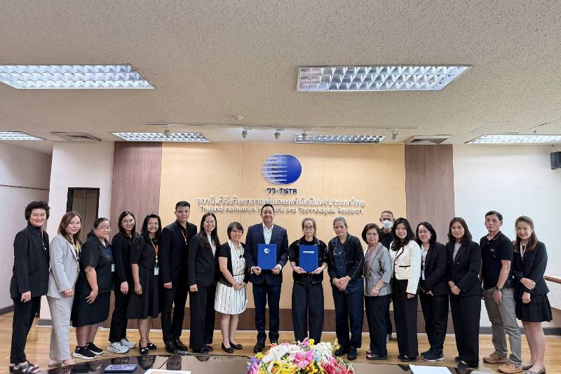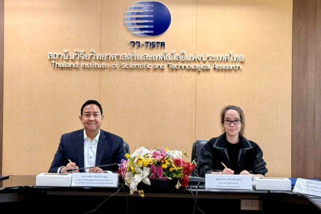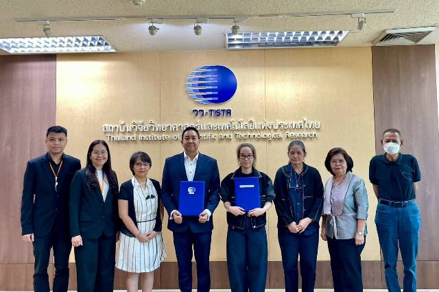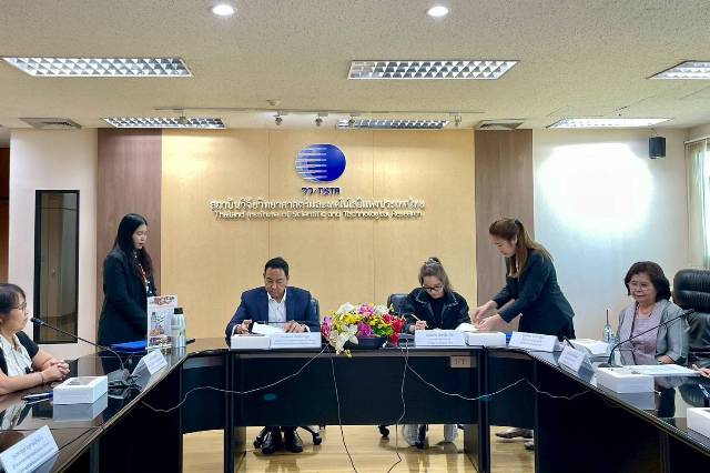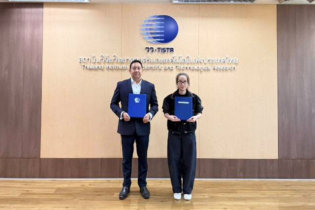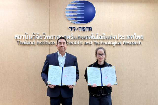 ดร.พงศธร ประภักรางกูล รองผู้ว่าการวิจัยและพัฒนาด้านอุตสาหกรรมชีวภาพ สถาบันวิจัยวิทยาศาสตร์และเทคโนโลยีแห่งประเทศไทย (วว.) กระทรวงการอุดมศึกษา วิทยาศาสตร์ วิจัยและนวัตกรรม (อว.) ลงนามความร่วมมือด้านบริการวิจัยกับ นางสาวอมเรศ เหล่าเรืองเลิศ ประธานห้างหุ้นส่วนจำกัดอมอร์4569 ภายใต้โครงการ “การพัฒนาผลิตภัณฑ์เครื่องสำอางที่มีส่วนผสมของน้ำมันหอมระเหยจากไพลเป็นส่วนประกอบ” เพื่อยกระดับงานวิจัยสมุนไพรไทยสู่การพัฒนาผลิตภัณฑ์เครื่องสำอางที่มีคุณภาพ ปลอดภัย และสามารถแข่งขันได้ในเชิงพาณิชย์ เมื่อวันที่ 16 ธันวาคม 2568 ณ หแงประชุมผู้บริหารชั้น 8 อาคาร RD 1 วว. เทคโนธานี คลองห้า จ.ปทุมธานี