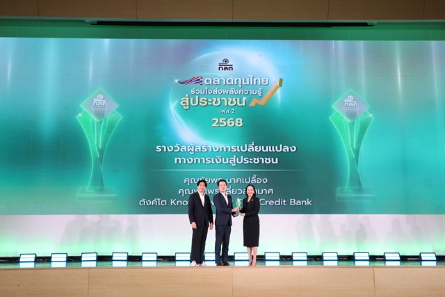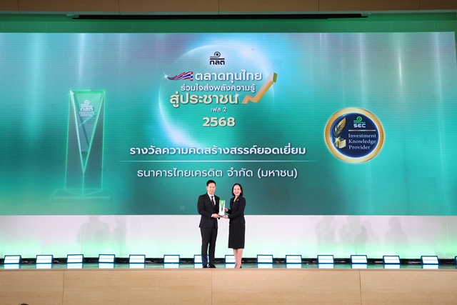 ธนาคารไทยเครดิต จำกัด (มหาชน) คว้า 2 รางวัล จากสำนักงานคณะกรรมการกำกับหลักทรัพย์และตลาดหลักทรัพย์ (ก.ล.ต.) ภายใต้โครงการ “ตลาดทุนไทย ร่วมใจส่งพลังความรู้สู่ประชาชน เฟส 2 ปี 2568″ ได้แก่ รางวัล “ความคิดสร้างสรรค์ยอดเยี่ยม” (Creativity Awards) และ รางวัล “ผู้สร้างการเปลี่ยนแปลงทางการเงินสู่ประชาชน“ (The Financial Changemaker Award) จากผลสำเร็จของโครงการ “ตังค์โต Know-how” ที่ดำเนินการส่งเสริมความรู้ทางการเงินมาตลอด 9 ปี โดยครอบคลุม 76 จังหวัดทั่วประเทศ และมีผู้เข้าร่วมกว่า 300,000 คน โดยมีนายกมลภู ภูริดิฐสกุล รองกรรมการผู้จัดการ กลุ่มบริหารธุรกิจไมโครไฟแนนซ์และสาขาสินเชื่อ เป็นผู้แทนธนาคารเข้ารับมอบรางวัลจาก ศาสตราจารย์ ดร.พรอนงค์ บุษราตระกูล เลขาธิการ สำนักงานคณะกรรมการกำกับหลักทรัพย์และตลาดหลักทรัพย์ เมื่อวันที่ 15 ธันวาคม 2568 ณ ห้องมีฆวาน รังสรรค์ สโมสรทหารบก