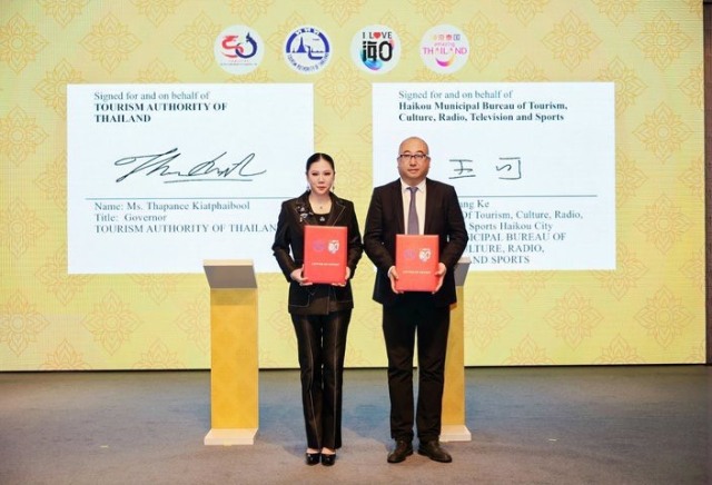 วันที่ 18 ธันวาคม 2568 การท่องเที่ยวแห่งประเทศไทย (ททท.) นำโดย นางสาวฐาปนีย์ เกียรติไพบูลย์ ผู้ว่าการการท่องเที่ยวแห่งประเทศไทย (ผทท.) เข้าร่วมในพิธีลงนามข้อตกลงความร่วมมือด้านการท่องเที่ยว Letter of Intent (LOI) กับ สำนักการท่องเที่ยว วัฒนธรรม วิทยุ โทรทัศน์ และกีฬา นครไหโข่ว นำโดย คุณหวัง เค่อ ผู้อำนวยการสำนักการท่องเที่ยวฯ ไหโข่ว และบริษัท Tongcheng Travel นำโดย คุณหลี่ หมิงห้าว รองประธานกลุ่มบริษัท Tongcheng Group ณ นครไหโข่ว มณฑลไห่หนาน สาธารณรัฐประชาชนจีน เพื่อสร้างกรอบความร่วมมือเชิงกลยุทธ์ระยะยาว และยกระดับความสัมพันธ์ด้านการท่องเที่ยวระหว่างไทย-จีน ภายใต้แนวคิด “จงไท่-อี้เจียชิน” หรือ จีนไทย ครอบครัวเดียวกัน