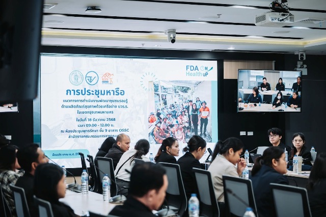 วันที่ 18 ธันวาคม 2568 เภสัชกรเลิศชาย เลิศวุฒิ รองเลขาธิการคณะกรรมการอาหารและยา ประธานการประชุมหารือแนวทางการพัฒนาชุมชนรอบรู้ด้านผลิตภัณฑ์สุขภาพด้วยเครือข่าย บวร.ร. ร่วมกับ 50 เขตกรุงเทพมหานคร ประจำปีงบประมาณ พ.ศ. 2569 เพื่อสื่อสารนโยบาย และสร้างความร่วมมือการดำเนินงานพัฒนาชุมชนรอบรู้ด้านผลิตภัณฑ์สุขภาพเขตเมือง ผ่านเครือข่ายชุมชนร่วมใจ ป้องกันภัยผลิตภัณฑ์สุขภาพ หรือเครือข่าย บวร.ร.