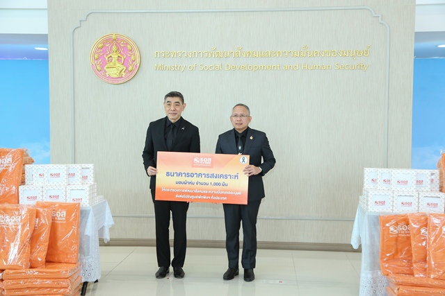 วันที่ 18 ธันวาคม 2568 นายกันตพงศ์ รังษีสว่าง ปลัดกระทรวงการพัฒนาสังคมและความมั่นคงของมนุษย์ (ปลัด พม.) เป็นประธานในพิธีรับมอบผ้าห่ม จำนวน 1,000 ผืน และผ้าขนหนู จำนวน 300 ผืน รวมมูลค่า 346,500 บาท จากธนาคารอาคารสงเคราะห์ (ธอส.) โดยนายกมลภพ วีระพละ กรรมการผู้จัดการ เพื่อให้กระทรวงการพัฒนาสังคมและความมั่นคงของมนุษย์ (พม.) ส่งต่อไปยังศูนย์พักพิงชั่วคราวทั่วประเทศ สำหรับการช่วยเหลือกลุ่มเปราะบางและประชาชนที่ประสบภัย โดยมีคณะผู้บริหารกระทรวง พม. เข้าร่วม ณ บริเวณโถงชั้น 1 อาคารกรมพัฒนาสังคมและสวัสดิการ กระทรวงการพัฒนาสังคมและความมั่นคงของมนุษย์