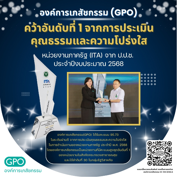ทั้งนี้ องค์การเภสัชกรรมขอขอบคุณหน่วยงาน องค์กร และผู้เกี่ยวข้องกับการดำเนินงานทุกภาคส่วน คณะผู้บริหาร ผู้ปฏิบัติงานที่ร่วมสร้างความเชื่อมั่นแก่ผู้มีส่วนได้ส่วนเสีย ตลอดจนประชาชนผู้รับบริการที่มีส่วนร่วมในการประเมินดังกล่าว โดยองค์การเภสัชกรรมจะมุ่งมั่นพัฒนาคุณภาพการบริหารจัดการให้ดีขึ้น อย่างต่อเนื่องในฐานะ “องค์กรหลักเพื่อความมั่นคงทางยาและเวชภัณฑ์ของประเทศ ที่ชาวไทยไว้วางใจ และภาคภูมิใจ”