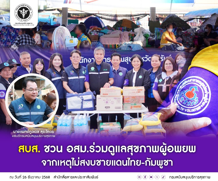 กรมสนับสนุนบริการสุขภาพ (สบส.)  กระทรวงสาธารณสุข  ดึงพลังภาคประชาชนหนุนเสริมงานสาธารณสุขในภาวะฉุกเฉิน เปิดรับสมัครอาสาสมัครสาธารณสุขประจำหมู่บ้าน (อสม.) เข้าร่วมปฎิบัติงานกับหน่วยแพทย์ประจำศูนย์พักพิง ดูแลสุขภาพผู้อพยพจากเหตุความไม่สงบชายแดนไทย-กัมพูชา