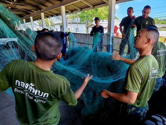 ซึ่งอวนทั้งหมดจะถูกส่งต่อให้กองทัพบกและกองทัพเรือ โดยจนถึงขณะนี้มีการส่งมอบแล้วรวม 5 ครั้ง ปริมาณรวมทั้งสิ้น 36 ตัน และยังคงได้รับการประสานส่งมอบอวนจากพี่น้องชาวประมงอย่างต่อเนื่อง