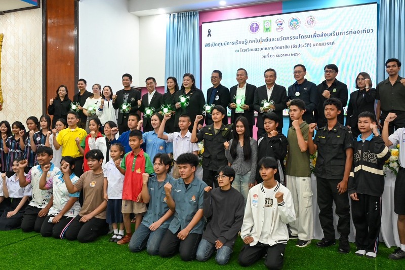 วันที่ 26 ธันวาคม 2568 สำนักงานการวิจัยแห่งชาติ(วช.) กระทรวงการอุดมศึกษา วิทยาศาสตร์ วิจัยและนวัตกรรม ร่วมกับ สมาคมกีฬาเครื่องบินจำลองและวิทยุบังคับ และ โรงเรียนสวนกุหลาบวิทยาลัย(จิรประวัติ) นครสวรรค์ จัดพิธีเปิดศูนย์การเรียนรู้เทคโนโลยีและนวัตกรรมโดรนเพื่อส่งเสริมการท่องเที่ยว โดยมี ดร.วิภารัตน์ ดีอ่อง ผู้อำนวยการสำนักงานการวิจัยแห่งชาติ เป็นประธานในพิธีเปิด พร้อมด้วย นางสาวพวงเพ็ชร สุขจิตร์ ผู้อำนวยการกองการศึกษา ศาสนา และวัฒนธรรม องค์การบริหารส่วนจังหวัดนครสวรรค์ กล่าวแสดงความยินดีและกล่าวต้อนรับ และนายพิศิษฐ์ มิตรเกื้อกูล นายกสมาคมกีฬาเครื่องบินจำลองและวิทยุบังคับ กล่าวรายงานที่มาของโครงการ ณ โรงเรียนสวนกุหลาบวิทยาลัย (จิรประวัติ) นครสวรรค์