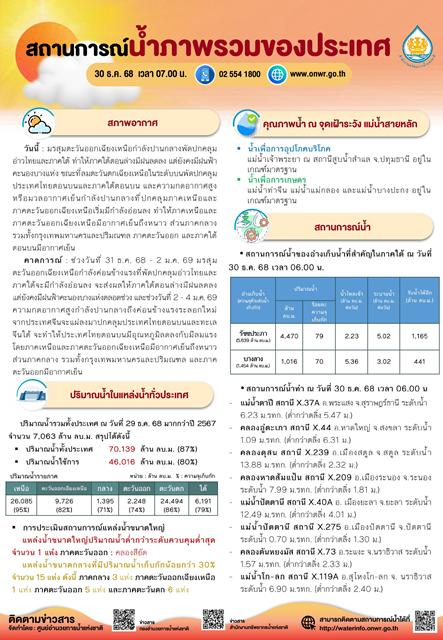 • สถานการณ์น้ำท่า ณ วันที่ 30 ธ.ค. 68 เวลา 06.00 น