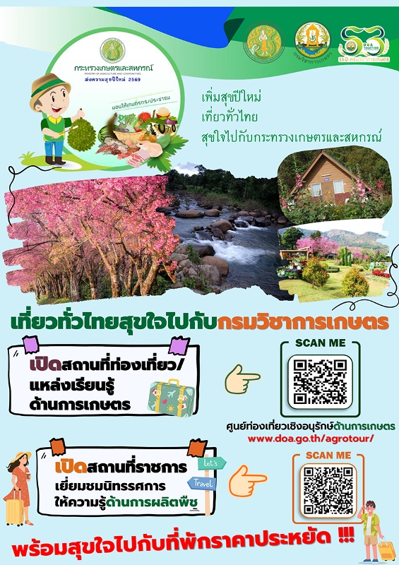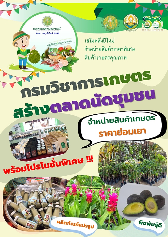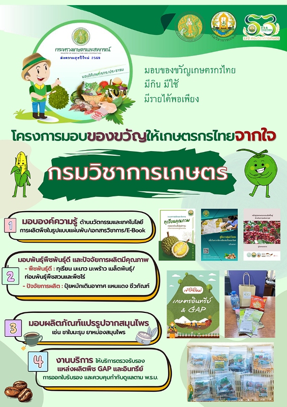 นายรพีภัทร์ จันทรศรีวงศ์ อธิบดีกรมวิชาการเกษตร เปิดเผยว่า ตามนโยบายกระทรวงเกษตรและสหกรณ์ในการดำเนิน “โครงการส่งความสุขปีใหม่ มอบให้เกษตรกร กระทรวงเกษตรและสหกรณ์ ประจำปี พ.ศ. 2569” กรมวิชาการเกษตรได้ร่วมส่งมอบความสุขให้แก่เกษตรกรและประชาชนในช่วงเทศกาลปีใหม่ ตั้งแต่เดือนธันวาคม 2568 ถึงเดือนมกราคม 2569 โดยหน่วยงานในสังกัดของกรมวิชาการเกษตรทั้งในส่วนกลางและส่วนภูมิภาค ผ่านการจัดกิจกรรมสำคัญ 3 กิจกรรม ได้แก่