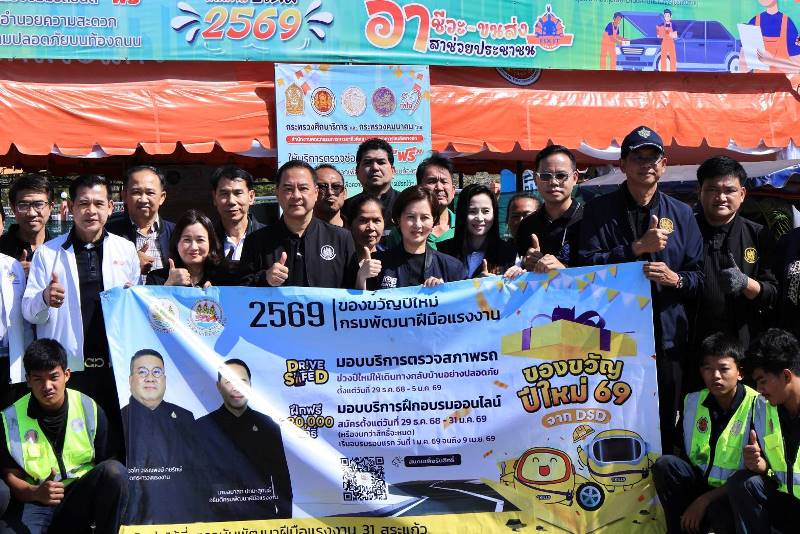 รัฐมนตรีว่าการกระทรวงแรงงาน กล่าวว่า ในช่วงเทศกาลปีใหม่มีการเดินทางของประชาชนเป็นจำนวนมาก กระทรวงแรงงานจึงได้มอบหมายให้หน่วยงานในสังกัดดำเนินมาตรการเชิงรุก ภายใต้นโยบายการป้องกันและลดอุบัติเหตุจากการเดินทาง โดยโครงการ Drive Safe D เช็กชัวร์ เป็นกลไกสำคัญในการสร้างความตระหนักรู้ด้านความปลอดภัย พร้อมให้บริการตรวจสภาพรถ อาทิ ระบบเบรก ยางรถยนต์ ไฟส่องสว่าง น้ำมันเครื่อง โดยไม่เสียค่าใช้จ่าย จนถึงวันที่ 5 มกราคม 2569 เพื่อช่วยลดความเสี่ยงจากอุบัติเหตุ และส่งเสริมให้ประชาชนเดินทางอย่างปลอดภัย