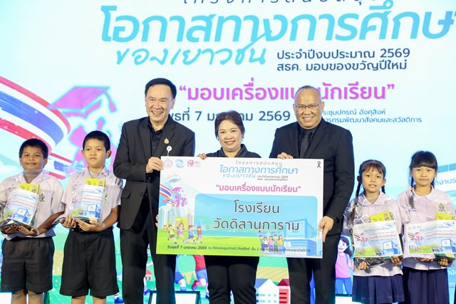 วันที่ 7 มกราคม 2569 นายกิตติ อินทรกุล รองปลัดกระทรวงการพัฒนาสังคมและความมั่นคงของมนุษย์ เป็นประธานในพิธีมอบทุนการศึกษาและเครื่องแบบนักเรียน ประจำปีงบประมาณ 2569 ให้แก่ผู้มีส่วนได้ส่วนเสีย ซึ่งเป็นประชาชนผู้ใช้บริการสำนักงานธนานุเคราะห์ (สธค.) ภายใต้โครงการสนับสนุนโอกาสทางการศึกษาของเยาวชน ประจำปีงบประมาณ 2569 สธค. มอบของขวัญปีใหม่ “ทุนการศึกษาสร้างพลังแห่งโอกาส” โดยมีนายประสงค์ พันธ์ลิมา ผู้อำนวยการสำนักงานธนานุเคราะห์ กล่าวรายงาน พร้อมด้วยคณะผู้บริหารกระทรวง พม. เข้าร่วม ณ ห้องประชุมปกรณ์ อังศุสิงห์ ชั้น 2 อาคารกรมพัฒนาสังคมและสวัสดิการ กระทรวงการพัฒนาสังคมและความมั่นคงของมนุษย์