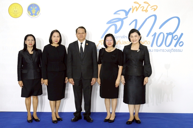 โอกาสนี้ กรมพินิจและคุ้มครองเด็กและเยาวชน ขอประกาศเจตนารมณ์ และให้คำมั่นสัญญาครั้งสำคัญในการยกระดับมาตรการสูงสุดเพื่อต่อต้านยาเสพติดอย่างแน่วแน่ และดำเนินงานให้สอดรับกับนโยบายของรัฐบาล และรัฐมนตรีว่าการกระทรวงยุติธรรม ในการป้องกันและปราบปรามยาเสพติด จึงได้จัด โครงการ ‘พินิจสีขาว มอบโอกาสใหม่ สร้างพื้นที่ปลอดยาเสพติด 100%’ ขึ้น”