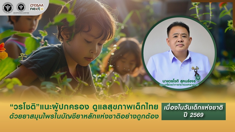 “วรโชติ” รัฐมนตรีช่วยว่าการกระทรวงสาธารณสุข ห่วงใยสุขภาพเด็กไทย เนื่องในโอกาสวันเด็กแห่งชาติ ปี 2569 แนะผู้ปกครองใช้ยาสมุนไพรในบัญชียาหลักแห่งชาติอย่างถูกต้อง เมื่อเด็กมีอาการเจ็บป่วยทั่วไป ได้แก่ ยาประสะกะเพรา ยาเหลืองปิดสมุทร ยาเขียวหอม ยาจันทลีลา ยาประสะมะแว้ง