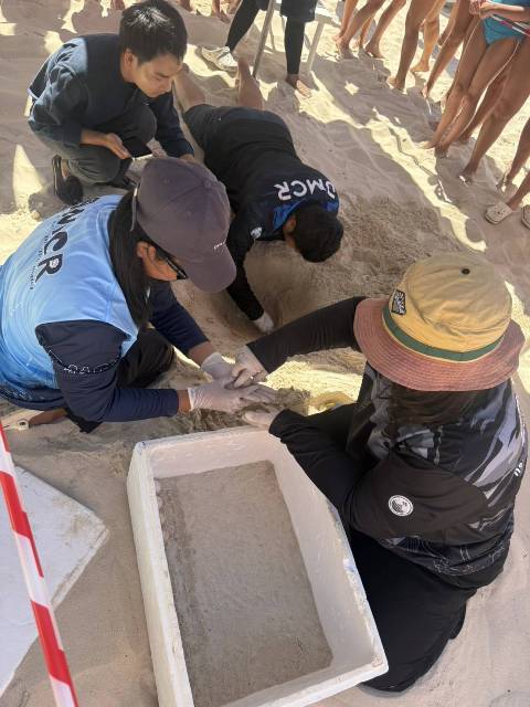 วันที่ 10 มกราคม 2569 ดร.ปิ่นสักก์ สุรัสวดี อธิบดีกรมทรัพยากรทางทะเลและชายฝั่ง ได้รับรายงานพบแม่ เต่าหญ้า ขึ้นวางไข่บริเวณหน้าหาด Le Méridien Phuket Beach Resort ตำบลกะรน อำเภอเมือง จังหวัด ภูเก็ต จำนวน 84 ฟอง โดยพื้นที่วางไข่อยู่ในสภาพปลอดภัย น้ำท่วมไม่ถึง และมีการเฝ้าระวังดูแลอย่างใกล้ชิด