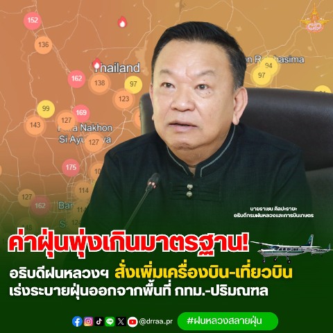 ค่าฝุ่นพุ่งเกินมาตรฐาน! อธิบดีฝนหลวงฯ สั่งเพิ่มเครื่องบิน-เที่ยวบิน เร่งระบายฝุ่น ออกจากพื้นที่ กทม.-ปริมณฑล