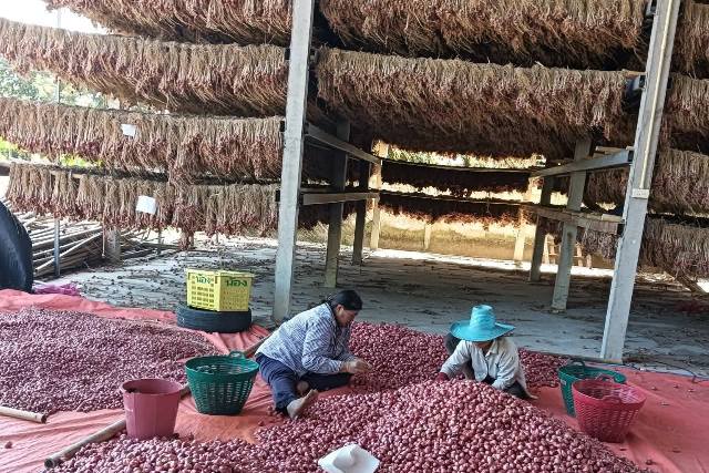 ด้านนางบานใจ มามาก สหกรณ์จังหวัดศรีสะเกษ กล่าวถึง สถานการณ์หอมแดง จ.ศรีสะเกษในฤดูกาลผลิตปีนี้ (2568/69) มีผลผลิตรวมประมาณ 145,424 ตัน ครอบคลุมพื้นที่ปลูกใน 7 อำเภอ รวมเนื้อที่ปลูก 34,478 ไร่ ให้ผลผลิตเฉลี่ย 4,218 กิโลกรัม/ไร่ โดยช่วงมกราคมถึงกุมภาพันธ์ผลผลิตหอมแดงออกมาพร้อมกันเป็นจำนวนมาก ขณะแหล่งรับซื้อที่มีอยู่ไม่สามารถรองรับผลผลิตทั้งหมดได้ส่งผลให้ราคารับซื้อหน้าสวนตกต่ำราคาเฉลี่ยอยู่ที่ 6-7 บาท/กิโลกรัมเท่านั้น ขณะต้นทุนการผลิตเฉลี่ยอยู่ที่ 10-11 บาท/กิโลกรัม