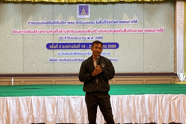 กรมคุ้มครองสิทธิและเสรีภาพ จัดการอบรมส่งเสริมสิทธิเสรีภาพและสิทธิมนุษยชน ในพื้นที่จังหวัดชายแดนภาคใต้ สำหรับเจ้าหน้าที่รัฐ ครั้งที่ 2 ในพื้นที่จังหวัดนราธิวาส ประจำปีงบประมาณ พ.ศ. 2569