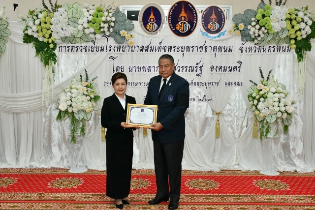 วันที่ 22 มกราคม 2569 ที่ โรงพยาบาลสมเด็จพระยุพราชธาตุพนม จังหวัดนครพนม นายพลากร สุวรรณรัฐ องคมนตรี รองประธานมูลนิธิโรงพยาบาลสมเด็จพระยุพราช ลงพื้นที่ติดตามการดำเนินงานของโรงพยาบาลและมอบประกาศเกียรติคุณแก่ผู้มีอุปการคุณ 25 ราย โดยมี ว่าที่พันตรี อดิศักดิ์ น้อยสุวรรณ ผู้ว่าราชการจังหวัดนครพนม พญ.บุญศิริ จันศิริมงคล สาธารณสุขนิเทศก์ เขตสุขภาพที่ 8 นพ.สมชาย ชมภูคำ นายแพทย์สาธารณสุขจังหวัดนครพนม นพ.มนู ชัยวงศ์โรจน์ ผู้อำนวยการโรงพยาบาลสมเด็จพระยุพราชธาตุพนม คณะผู้บริหาร และส่วนราชการในพื้นที่ร่วมคณะ