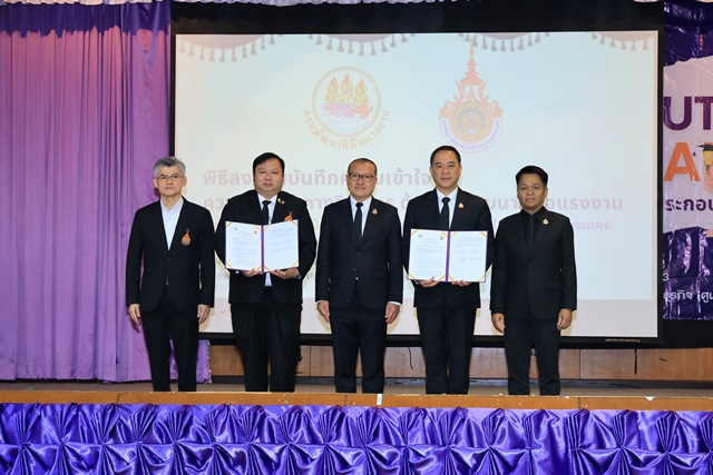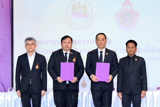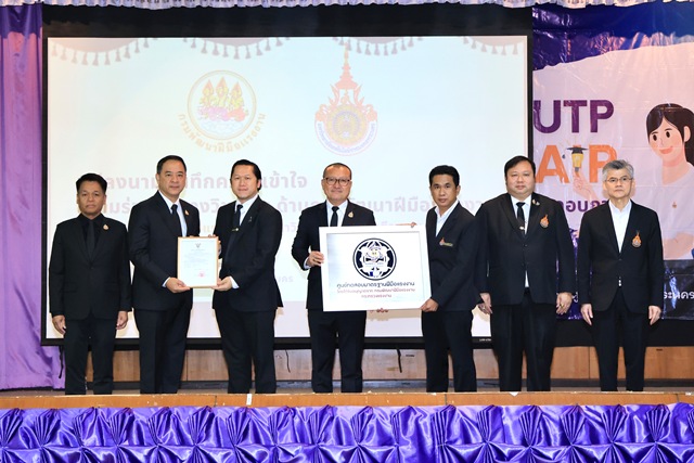นายสมาสภ์ ปัทมะสุคนธ์ อธิบดีกรมพัฒนาฝีมือแรงงาน เปิดเผยว่า กรมพัฒนาฝีมือแรงงาน มีความยินดีเป็นอย่างยิ่งที่ได้เข้าร่วมพิธีเปิดโครงการ RMUTP Job Fair (นัดพบสถานประกอบการเพื่อแนะนำการรับสมัครงาน) และร่วมลงนามในบันทึกความเข้าใจความร่วมมือทางวิชาการด้านการพัฒนาฝีมือแรงงาน ในวันนี้ ภารกิจหลักของกรม คือ การยกระดับทักษะฝีมือแรงงานให้พร้อมแข่งขันในตลาดโลก ซึ่งการบูรณาการความร่วมมือกับสถานศึกษาถือเป็นกลไกสำคัญตามนโยบายรัฐบาล ที่ผ่านมากรมฯร่วมกับมหาวิทยาลัยจัดตั้งศูนย์ทดสอบมาตรฐานฝีมือแรงงานไปแล้ว 4 สาขา ได้แก่ ด้านการตัดเย็บ การจัดดอกไม้ และการประกอบอาหารไทยระดับ 1 และ 2 และในวันนี้ เป็นการขยายผลความร่วมมือ โดยมุ่งเน้นการพัฒนาหลักสูตรทันสมัยเชื่อมโยงระบบการศึกษา และการเพิ่มศูนย์ทดสอบมาตรฐานฯ อีก 3 สาขา ประกอบด้วย ช่างเมคคาทรอนิกส์ และหุ่นยนต์ ช่างควบคุม PLC และช่างควบคมหุ่นยนต์อุตสาหกรรม นอกจากนี้ยังมีการมอบใบประกาศนียบัตรใบอนุญาตเป็นผู้ดำเนินการทดสอบมาตรฐานฝีมือแรงงาน สาขาอาชีพเครื่องจักรกลและการผลิต สาขาช่างเขียนแบบเครื่องกลด้วยคอมพิวเตอร์ CAD และ สาขาช่างสอบเทียบเครื่องมือวัด (มิติ) มอบป้าย “ศูนย์ทดสอบมาตรฐานฝีมือแรงงาน สถาบันสหวิทยาการดิจิทัลและหุ่นยนต์ และ ป้าย “ศูนย์ทดสอบมาตรฐานฝีมือแรงงาน คณะวิศวกรรมศาสตร์ มหาวิทยาลัยเทคโนโลยีราชมงคลพระนคร อีกด้วย