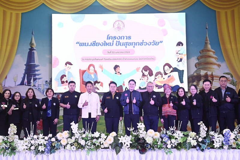 วันที่ 22 มกราคม 2569 นายอัครา พรหมเผ่า รัฐมนตรีว่าการกระทรวงการพัฒนาสังคมและความมั่นคงของมนุษย์ (รมว.พม.) ลงพื้นที่จังหวัดเชียงใหม่ เพื่อเปิดโครงการ “พม.เชียงใหม่ปันสุขทุกช่วงวัย” ตามนโยบาย “พม. ใกล้คุณ” และมอบแนวทางการขับเคลื่อนงานส่งเสริมการเข้าถึงสิทธิสวัสดิการสังคมของประชาชนกลุ่มเป้าหมายทุกช่วงวัย เชื่อมโยงภาคีเครือข่ายท้องถิ่น ณ โรงเรียนจอมทอง อำเภอจอมทอง จังหวัดเชียงใหม่ และ ที่ว่าการอำเภอแม่วาง จังหวัดเชียงใหม่ โดยมี นายนเรศ ธำรงค์ทิพยคุณ รัฐมนตรีช่วยว่าการกระทรวงเกษตรและสหกรณ์ , นายกิตติ อินทรกุล รองปลัดกระทรวงการพัฒนาสังคมและความมั่นคงของมนุษย์ พร้อมคณะผู้บริหารกระทรวง พม. และทีม พม.ใกล้คุณจังหวัดเชียงใหม่, ผู้บริหารและผู้นำท้องถิ่น และภาคีเครือข่ายที่เกี่ยวข้อง เข้าร่วม
