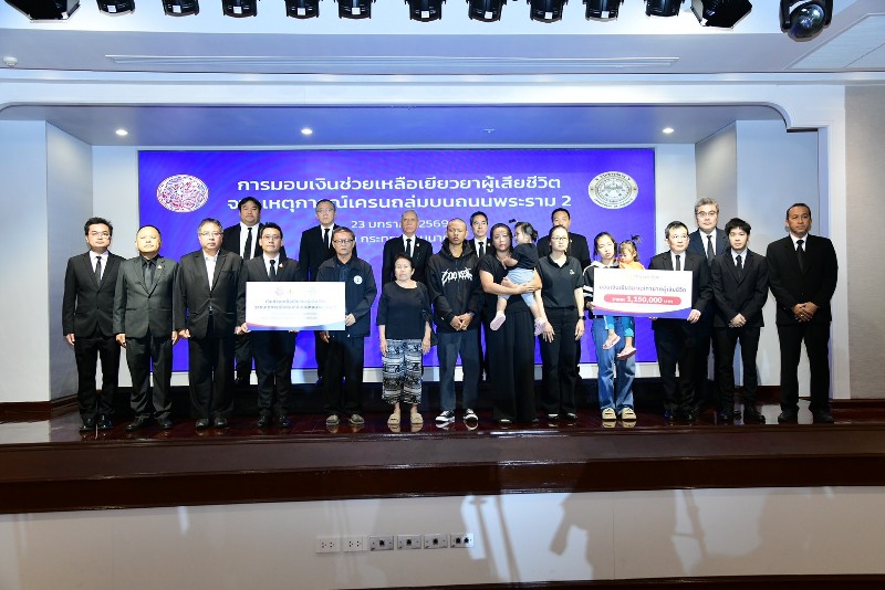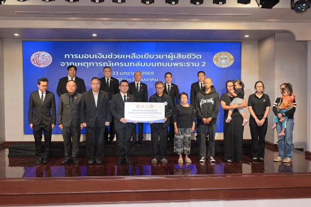 วันที่ 23 มกราคม 2569 – เมื่อเวลา 08.30 น. ณ หอประชุมราชรถสโมสร กระทรวงคมนาคม นายพิพัฒน์ รัชกิจประการ รองนายกรัฐมนตรีและรัฐมนตรีว่าการกระทรวงคมนาคม ให้เกียรติเป็นประธานสักขีพยานในพิธีมอบเงินเยียวยาแก่ครอบครัวผู้เสียชีวิตจากเหตุการณ์คานปูนและเครนก่อสร้างโครงการทางหลวงพิเศษหมายเลข 82 (M82) สายทางยกระดับบางขุนเทียน – บ้านแพ้ว ช่วงเอกชัย – บ้านแพ้ว ตอน 7 จังหวัดสมุทรสาคร พังถล่ม