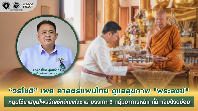 “วรโชติ” รมช.สธ. เดินหน้าดูแลสุขภาพพระสงฆ์ ชูศาสตร์การแพทย์แผนไทยและสมุนไพร ในบัญชียาหลักแห่งชาติ บรรเทาอาการเจ็บป่วยเบื้องต้นใน 5 กลุ่มอาการหลัก ได้แก่ ไข้หวัด ปวดกล้ามเนื้อ และข้อ ท้องเสีย (ไม่ติดเชื้อ) ท้องอืดท้องเฟ้อ และอาการทางผิวหนังและแผล มุ่งหวังเสริมสร้างสุขภาพที่ดี ให้พระภิกษุสงฆ์