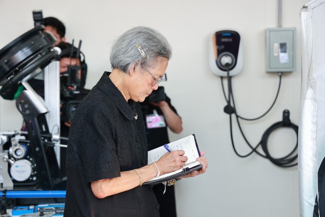 โอกาสนี้ สมเด็จพระกนิษฐาธิราชเจ้า กรมสมเด็จพระเทพรัตนราชสุดาฯ สยามบรมราชกุมารี เสด็จไปยังอาคาร Workshop Station จุดที่ 1 ทอดพระเนตรโมเดลสนามทดสอบและวีดิทัศน์ “Future mobility ศูนย์ทดสอบยานยนต์เชื่อมต่อและขับขี่อัตโนมัติ และ Workshop Station จุดที่ 2 ทอดพระเนตรเครื่องมือและระบบทดสอบสำคัญต่างๆ ภายในห้องดังกล่าว ดร.ปาษาณ กุลวานิช ผู้อำนวยการสถาบันนวัตกรรมหุ่นยนต์และยานยนต์อัตโนมัติ ได้กราบบังคมทูลถวายรายงานการใช้งาน Driving Robot ซึ่งเป็นอุปกรณ์ที่ติดตั้งบนรถทดสอบเพื่อทดแทนผู้ขับขี่ ช่วยให้การทดสอบมีความแม่นยำ สามารถบันทึกข้อมูลและตรวจสอบย้อนกลับได้ เหมาะสำหรับการทดสอบยานยนต์อัตโนมัติในระดับที่ 1–2 รวมถึง Robot Target หรือรถเป้าอัตโนมัติ ซึ่งใช้เป็นองค์ประกอบของฉากทัศน์การทดสอบ สามารถกำหนดเส้นทาง ความเร็ว และความเร่งได้ตามต้องการ โดยโครงสร้างผลิตจากวัสดุโฟมพิเศษที่สามารถสะท้อนคลื่นเรดาร์และไม่ก่อให้เกิดความเสียหายต่อรถทดสอบหากเกิดการชน ทั้งนี้ Robot Target ดังกล่าวเป็นผลงานการออกแบบและพัฒนาของกรมวิทยาศาสตร์บริการ มีสมรรถนะการขับเคลื่อนอัตโนมัติและสามารถทำความเร็วได้สูงสุดประมาณ 40 กิโลเมตรต่อชั่วโมง โดยสนามทดสอบของกรมวิทยาศาสตร์บริการสามารถรองรับการทดสอบยานยนต์อัตโนมัติได้ครบถ้วนทั้ง 5 ระดับ ตามมาตรฐานสากล