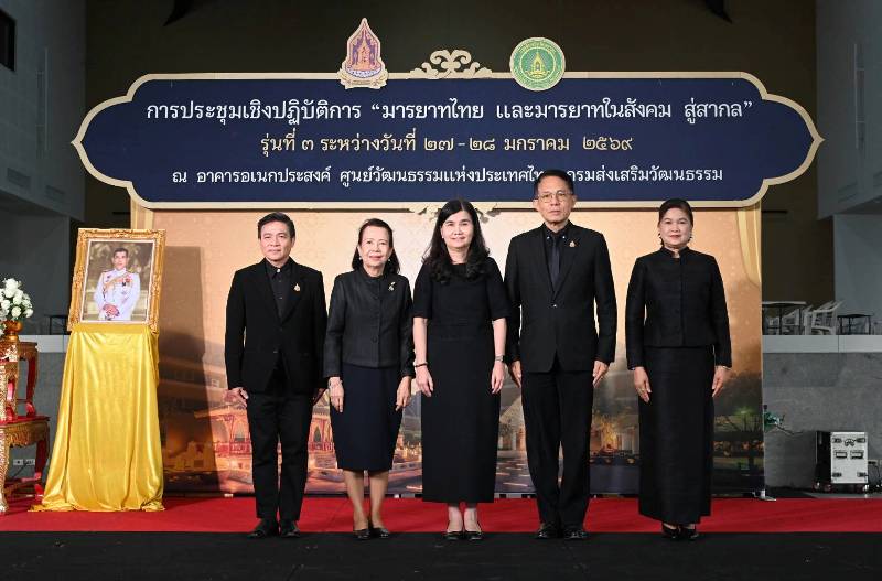 วันที่ 27 มกราคม 2569 เวลา 09.30 น. นางยุถิกา อิศรางกูร ณ อยุธยา อธิบดีกรมส่งเสริมวัฒนธรรม เป็นประธานเปิดการประชุมเชิงปฏิบัติการ “มารยาทไทย และมารยาทในสังคมสู่สากล” รุ่นที่ 3 พร้อมด้วยนายบันเทิง เพียรค้า ผู้อำนวยการกลุ่มค่านิยมและความเป็นไทย รักษาราชการแทนผู้อำนวยการสถาบันวัฒนธรรมศึกษา คณะวิทยากรผู้ทรงคุณวุฒิ ผู้เข้าร่วมการประชุม เข้าร่วมพิธีเปิด ณ อาคารอเนกประสงค์ ศูนย์วัฒนธรรมแห่งประเทศไทย