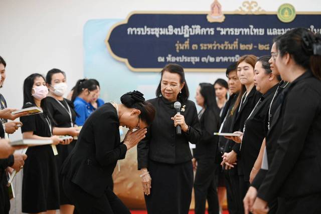 นายบันเทิง เพียรค้า ผู้อำนวยการกลุ่มค่านิยมและความเป็นไทย รักษาราชการแทนผู้อำนวยการสถาบันวัฒนธรรมศึกษา กล่าวเพิ่มเติมว่า การประชุมเชิงปฏิบัติการ “มารยาทไทย และมารยาทในสังคมสู่สากล” มีวัตถุประสงค์เพื่อพัฒนาศักยภาพของครู อาจารย์ บุคลากรทางการศึกษา และข้าราชการของกรมส่งเสริมวัฒนธรรม ให้มีความรู้ความเข้าใจในการเป็นวิทยากรด้านมารยาทไทย มารยาทในสังคม แนวปฏิบัติอันเกี่ยวเนื่องกับงานพระบรมศพ การถวายสักการะพระบรมศพสมเด็จพระนางเจ้าสิริกิติ์ พระบรมราชินีนาถพระบรมราชชนนีพันปีหลวง และการจัดโต๊ะหมู่บูชา รวมทั้งการเข้าร่วมกิจกรรม “ริบบิ้น ร้อยดวงใจถวายความอาลัย พระพันปีหลวง” ภายใต้โครงการหนึ่งความดีล้านความรัก ภูมิใจภักดิ์พระพันปีหลวงโดยในปีงบประมาณพุทธศักราช 2569 กำหนดจัดการประชุมเชิงปฏิบัติการ “มารยาทไทย และมารยาทในสังคม สู่สากล” จำนวน 4 รุ่น โดยครั้งนี้เป็นการประชุมเชิงปฏิบัติการฯ รุ่นที่ 3 จัดขึ้นระหว่างวันที่ 27 – 28 มกราคม พุทธศักราช 2569 มีผู้เข้าร่วมการประชุมจำนวนทั้งสิ้น 124 คน ประกอบด้วย ครู อาจารย์ และบุคลากรทางการศึกษาทั้งชาวไทยและชาวต่างชาติจำนวน 116 คน ข้าราชการกรมส่งเสริมวัฒนธรรม จำนวน 8 คน โดยมีเนื้อหาการประชุม ได้แก่ (1) การอภิปราย เรื่อง “มารยาทไทย เสน่ห์ความเป็นไทย ก้าวไปสู่สากล” (2) แบ่งกลุ่มฝึกท่าปฏิบัติมารยาทไทย (3) แบ่งกลุ่มฝึกปฏิบัติ “แนวปฏิบัติอันเกี่ยวเนื่องกับงานพระบรมศพและโอกาสต่าง ๆ”