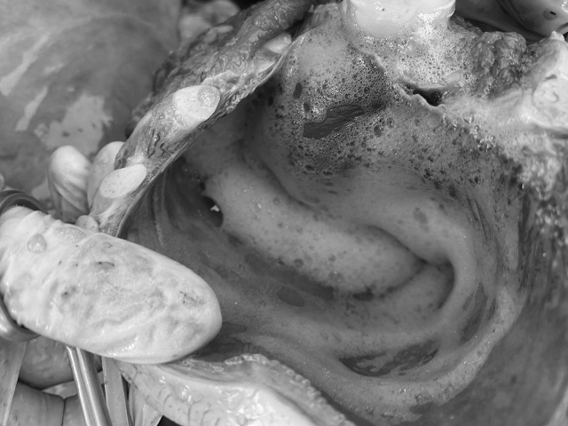 เมื่อเปิดผ่าชันสูตรดูอวัยวะภายในพบว่าหัวใจมีเลือดคั่งและบวมน้ำเล็กน้อย ส่วนของทางเดินหายใจพบฟองอากาศและของเหลวคั่งภายในหลอดลมและเนื้อเยื่อปอด ปอดบวมน้ำ บริเวณเนื้อเยื่อปอดด้านนอกพบลักษณะปื้นสีดำรูปร่างไม่แน่นอน ขนาดประมาณ 1-2 ซม. ส่วนของทางเดินอาหารไม่พบอาหารและสิ่งแปลกปลอมภายในทางเดินอาหาร สาเหตุการตายเกิดจากการจมน้ำ โดยคาดว่าสาเหตุโน้มนำเกิดจากการป่วยและพลัดหลงจากแม่ ทั้งนี้ เจ้าหน้าที่ได้ทำการเก็บตัวอย่างชิ้นเนื้อเพื่อนำไปวิเคราะห์ทางห้องปฏิบัติการ ตัวอย่างโครงกระดูกส่วนขากรรไกรล่าง ครีบอก กระดูกเชิงกรานและทำการจัดการซากโดยได้รับความอนุเคราะห์จากองค์การบริหารส่วนตำบลปูยู จังหวัดสตูลเพื่อใช้รถแมคโครในการขุดฝังกลบซากในพื้นที่