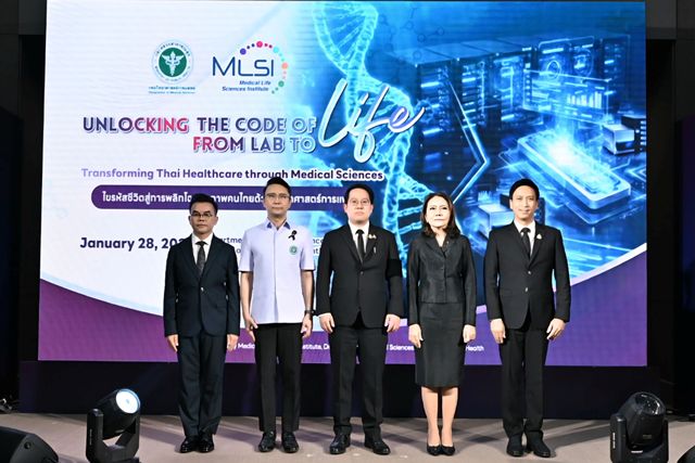 วันที่ 28 มกราคม 2569 ที่กรมวิทยาศาสตร์การแพทย์ จังหวัดนนทบุรี นายพัฒนา พร้อมพัฒน์ รัฐมนตรีว่าการกระทรวงสาธารณสุขเป็นประธานเปิดงาน “Unlocking The Code of Life : From Lab To Life Transforming Thai Healthcare through Medical Sciences : ไขรหัสชีวิตสู่การพลิกโฉมสุขภาพคนไทยด้วยวิทยาศาสตร์การแพทย์” และ “เปิดศูนย์ตรวจวิเคราะห์โรคทางพันธุกรรมขั้นสูงแห่งชาติ (National Center for Advanced Genetic Diagnostics : NCAGD) โดยมี ผู้ช่วยศาสตราจารย์ Khoo Yoong Khean จาก Duke-NUS Medical School ประเทศสิงคโปร์ นายยอดศักดิ์ รักษาแก้ว ที่ปรึกษารัฐมนตรีว่าการกระทรวงสาธารณสุข นางสาวจิตศ์ตราฎ์ หมีทองธนกรณ์ เลขานุการรัฐมนตรีว่าการกระทรวงสาธารณสุข นพ.เอกชัย เพียรศรีวัชรา รองปลัดกระทรวงสาธารณสุข ดร.นพ.สราวุฒิ บุญสุข อธิบดีกรมวิทยาศาสตร์การแพทย์ ผู้บริหารกระทรวงสาธารณสุข วิทยากรผู้เชี่ยวชาญจากหน่วยงานที่เกี่ยวข้องทั้งในและต่างประเทศ ผู้บริหารเครือข่ายบริการสุขภาพทั่วประเทศ นายแพทย์สาธารณสุขจังหวัด ผู้อำนวยการโรงพยาบาล สาธารณสุขอำเภอ ผู้แทนหน่วยงานภาครัฐและเอกชน เจ้าหน้าที่กรมวิทยาศาสตร์การแพทย์ และสื่อมวลชน เข้าร่วมงาน