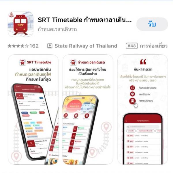 การรถไฟแห่งประเทศไทย ได้พัฒนาแอปพลิเคชัน “SRT Timetable” V.3 เวอร์ชั่นใหม่ล่าสุด ทันสมัย ตอบโจทย์กว่าเดิม เพื่อให้คุณไม่พลาดทุกความเคลื่อนไหว สามารถใช้ทั้งในระบบปฏิบัติการ Android และ IOS ช่วยให้การตรวจสอบเวลาขบวนรถและราคาค่าตั๋วโดยสาร รวมถึงข้อมูลต่าง ๆ เป็นเรื่องง่าย เพียงปลอยนิ้วสัมผัส โดยเริ่มใช้งานตั้งแต่วันนี้เป็นต้นไป