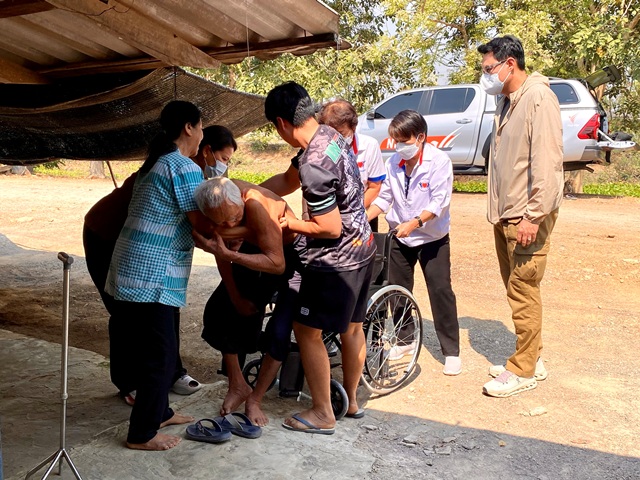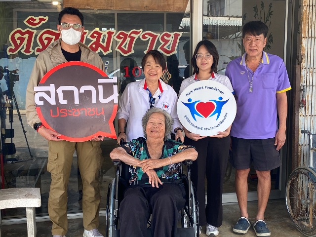 ส่วนรถเข็นวีลแชร์คันที่สอง มูลนิธิฯ ลงพื้นที่อำเภอบ้านโป่ง จังหวัดราชบุรี เพื่อมอบให้แก่ นางล้ง เซี่ยงว่อง อายุ 94 ปี ผู้สูงอายุติดเตียงที่มีโรคประจำตัวหลายโรค อาทิ เบาหวาน ความดันโลหิตสูง และภาวะสะโพกหัก ส่งผลให้ไม่สามารถเดินได้มานานกว่า 10 ปี จำเป็นต้องเดินทางไปพบแพทย์เป็นประจำทุกเดือน แต่การเคลื่อนย้ายในแต่ละครั้งเป็นไปด้วยความยากลำบาก ครอบครัวจึงขอรับความช่วยเหลือผ่านรายการสถานีประชาชน เพื่อให้การเดินทางไปรับการรักษาพยาบาลเป็นไปอย่างปลอดภัยและสะดวกมากยิ่งขึ้น