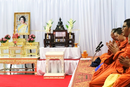พิธีบำเพ็ญกุศลจัดขึ้นด้วยความสงบ สำรวม และสมพระเกียรติ โดยประธานในพิธีได้จุดธูปเทียนบูชาพระรัตนตรัย จุดธูปเทียนเครื่องทองน้อย เบื้องหน้าพระฉายาลักษณ์ สมเด็จพระนางเจ้าสิริกิติ์ พระบรมราชินีนาถ พระบรมราชชนนีพันปีหลวง จากนั้น พระพิธีธรรม พระสงฆ์จำนวน 10 รูป ให้ศีลและสวดพระพุทธมนต์ เพื่อถวายเป็นพระราชกุศล ต่อมา ประธานฝ่ายสงฆ์แสดงพระธรรมเทศนาพร้อมทั้งร่วมเจริญจิตภาวนา น้อมนำหลักธรรมคำสอนมาประยุกต์ใช้ในการดำเนินชีวิต และน้อมสำนึกในพระมหากรุณาธิคุณ จากนั้น ประธานในพิธีถวายจตุปัจจัยไทยธรรมแด่พระสงฆ์ ทอดผ้าไตร พระสงฆ์สดับปกรณ์ อนุโมทนาและกรวดน้ำ เป็นอันเสร็จพิธี