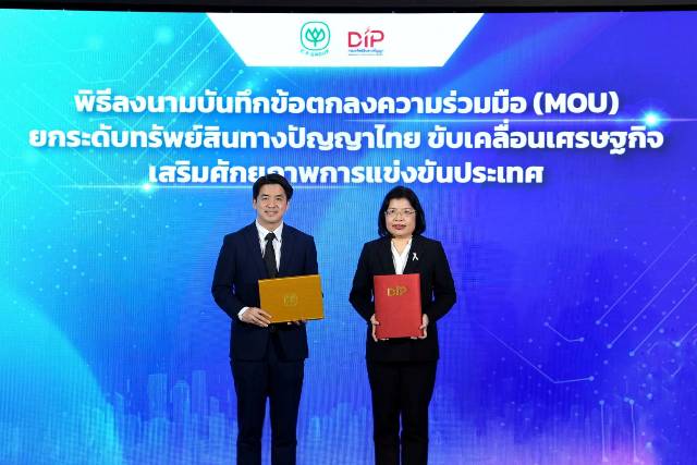 กรมทรัพย์สินทางปัญญา กระทรวงพาณิชย์ ลงนามบันทึกข้อตกลงความร่วมมือ (MOU) กับ บริษัท ซีพี รีเสิร์ช แอนด์ ดีเวลลอปเม้นท์ เซ็นเตอร์ จำกัด ในเครือเจริญโภคภัณฑ์ เชื่อมประสานการทำงานของภาครัฐและเอกชน เพื่อส่งเสริมการพัฒนาเทคโนโลยีและนวัตกรรมสมัยใหม่ ควบคู่กับการคุ้มครองและใช้ประโยชน์ทรัพย์สินทางปัญญาอย่างเป็นรูปธรรม พร้อมเปิดเวทีเสวนา “DIP x CP IP Forum 2026 : ยกระดับทรัพย์สินทางปัญญาไทยสู่ความเป็นเลิศ” เสริมศักยภาพการแข่งขันและขับเคลื่อนเศรษฐกิจไทยเติบโตอย่างยั่งยืน เมื่อวันที่ 2 กุมภาพันธ์ 2569 ณ ห้อง True Experience CP COE ชั้น 2 ทรูดิจิทัลพาร์ค