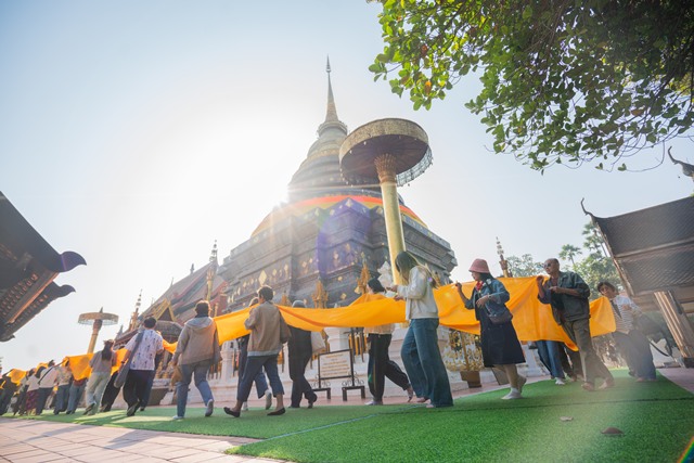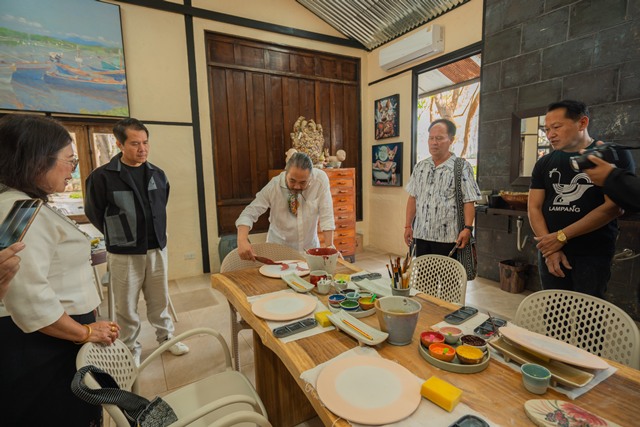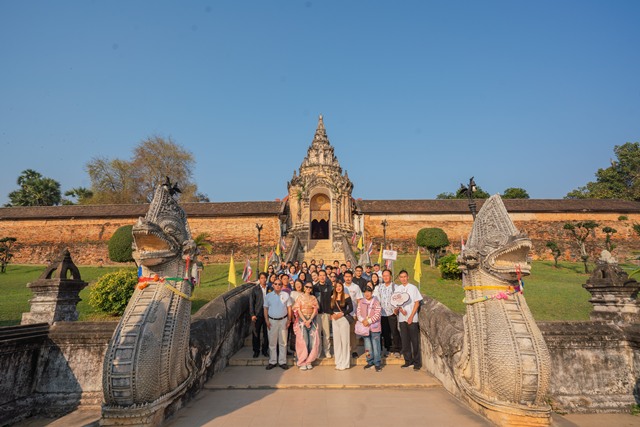 จากนั้น คณะได้เดินทางต่อเนื่องสู่จังหวัดลำพูน เพื่อซึมซับประวัติศาสตร์แห่งนครหริภุญชัย ณ วัดพระธาตุหริภุญชัย วรมหาวิหาร ร่วมกันบวงสรวงอนุสาวรีย์พระนางจามเทวี พร้อมสัมผัสความประณีตของภูมิปัญญาการทอผ้าฝ้ายแบบดั้งเดิมหมู่บ้านหัตถกรรมดอนหลวง Work Shop ผ้ามัดย้อมสีธรรมชาติ ชมความงามผ้าไหมยกดอกอันเป็นอัตลักษณ์ ณ สถาบันผ้าทอมือหริภุญชัย สุดประทับใจกับศิลปะการแสดงหาชมได้ยาก ณ โบราณสถานกู่ช้าง ศึกษาประวัติศาสตร์และความเชื่อท้องถิ่น และเช็กอินความคลาสสิกของสะพานขาวทาชมภู ก่อนจะเดินทางเข้าสู่จังหวัดลำปาง เพื่อย้อนรอยอดีตผ่านสถาปัตยกรรมสไตล์โคโลเนียล ณ บ้านพระยาสุเรนทร์ และสัมผัสสีสันของย่านเศรษฐกิจชุมชน ณ กาดกองต้า โดยมีไฮไลต์สำคัญคือ การเข้าสู่ใจกลางศรัทธา ณ วัดพระธาตุลำปางหลวง เพื่อชมเงาพระธาตุกลับหัวและสถาปัตยกรรมไม้ที่สมบูรณ์ที่สุด ปิดท้ายด้วยการเยี่ยมชมหอศิลป์เสรี (SERI ART GALLERY) ตื่นตากับงานปูนปั้นยักษ์ 3,000 ตน ณ วัดศรีล้อม สักการะวัดพระแก้วดอนเต้าสุชาดาราม และนั่งรถม้าสัมผัสเสน่ห์วิถีบ้านไม้สักโบราณในชุมชนท่ามะโอ ซึ่งเป็นประสบการณ์ที่สร้างความประทับใจและพลังศรัทธาอย่างสูงสุด