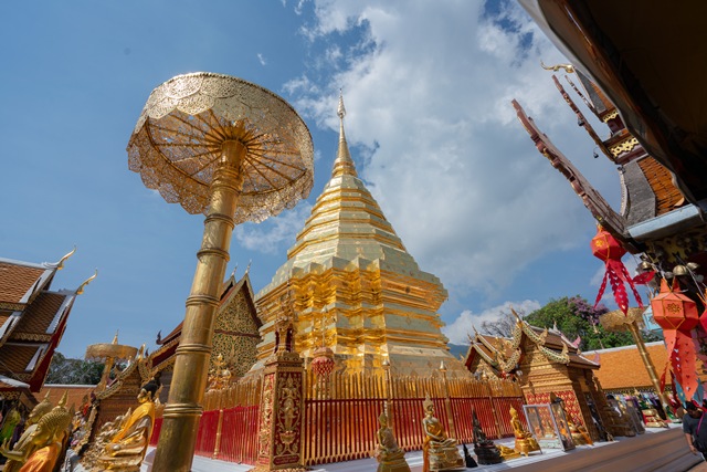 สำหรับการลงพื้นที่เปิดประสบการณ์ในครั้งนี้ คณะได้สัมผัสกับความเป็นสิริมงคลและความงดงามของเส้นทางที่ร้อยเรียงเรื่องราวพุทธศิลป์และวิถีชีวิตชาวล้านนาไว้อย่างไร้รอยต่อ โดยเริ่มต้นที่ จังหวัดเชียงใหม่ ด้วยการกราบนมัสการอนุสาวรีย์ครูบาศรีวิชัย ตนบุญแห่งล้านนา ก่อนจะเดินทางสู่ความเงียบสงบของวัดผาลาดที่ซ่อนตัวอยู่กลางผืนป่าดอยสุเทพ และมุ่งหน้าสู่จุดหมายปลายทางสูงสุด ณ วัดพระบรมธาตุดอยสุเทพราชวรวิหาร เพื่อร่วมพิธีห่มผ้าพระธาตุอันศักดิ์สิทธิ์ ศึกษาประวัติศาสตร์และโบราณสถานสมัยพญากือนาวัดอุโมงค์ ชมวัดศรีสุพรรณอุโบสถเงินและศึกษาการสืบสานภูมิปัญญาช่างเครื่องเงินท้องถิ่นย่านวัวลาย สกายวอล์ควัดดอยติ
