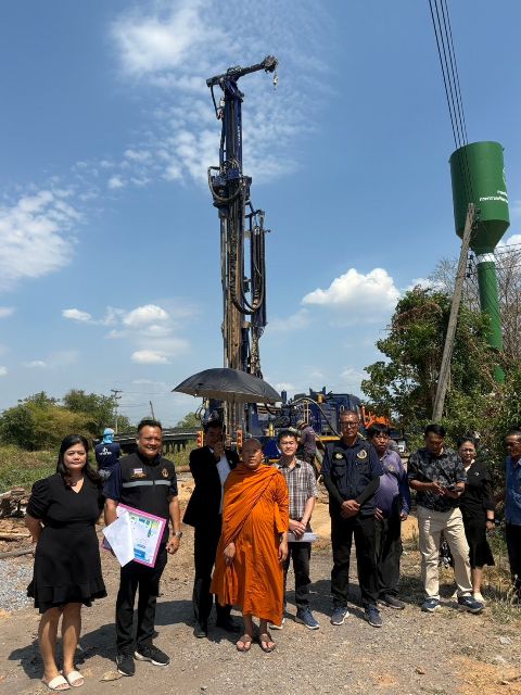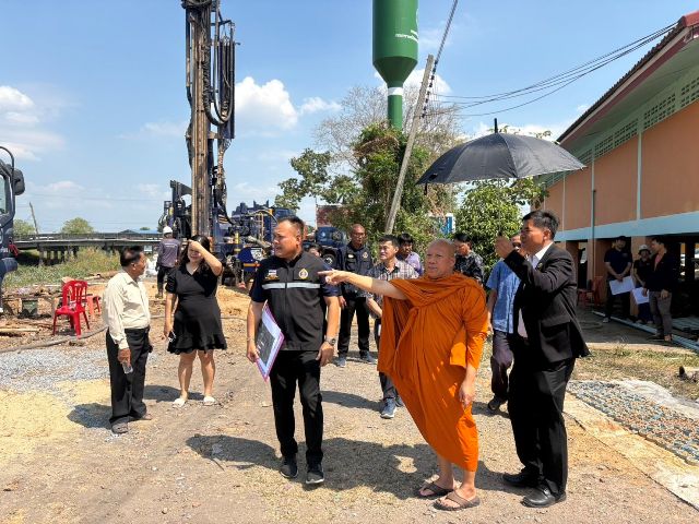 วันที่ 4 กุมภาพันธ์ 2569 นายปริญญา คุ้มสระพรม รองอธิบดีกรมทรัพยากรน้ำบาดาล พร้อมด้วยพระธรรมวชิรปาโมกข์ ผู้ช่วยเจ้าอาวาสวัดเทพศิรินทราวาสราชวรวิหาร ลงพื้นที่ติดตามงานก่อสร้างระบบประปาบาดาลโครงการพัฒนาน้ำบาดาลเพื่อความมั่นคงระดับชุมชน ประจำปีงบประมาณ พ.ศ. 2568 งบกลาง ในพื้นที่วัดบางปรัง ตำบลศรีจุฬา อำเภอเมืองนครนายก จังหวัดนครนายก เพื่อแก้ไขปัญหาความเดือดร้อนด้านคุณภาพน้ำไม่เหมาะสมสำหรับอุปโภคบริโภค และไม่เพียงพอต่อความต้องการใช้น้ำ โดยนายวินิต จันทรานนท์ ผู้อำนวยการสำนักทรัพยากรน้ำบาดาล เขต 3 (สระบุรี) พร้อมนายบุญโชค แซ่โง้ว ผู้อำนวยการส่วนวิชาการ นายสุกรี บูรณะสรรค์ ผู้อำนวยการส่วนปฏิบัติการ และเจ้าหน้าที่ให้การต้อนรับ ร่วมลงพื้นที่ติดตามงานก่อสร้างระบบประปาบาดาล และรายงานผลการดำเนินงานโครงการดังกล่าว ซึ่งรูปแบบโครงการประกอบด้วย บ่อน้ำบาดาลขนาด 6 นิ้ว จำนวน 2 บ่อ เครื่องสูบน้ำไฟฟ้าชนิดมอเตอร์จุ่มใต้น้ำ ขนาด 3 แรงม้า หอถังเหล็กเก็บน้ำ ขนาดความจุ 80 ลูกบาศก์เมตร ถังกรองสนิมเหล็ก จุดจ่ายน้ำถาวร ถังเก็บน้ำดิบขนาด 1,000 ลิตร อาคารศูนย์เรียนรู้ด้านน้ำบาดาล และจุดบริการน้ำดื่ม ทั้งนี้ เมื่อดำเนินงานโครงการแล้วเสร็จจะมีผู้ได้รับประโยชน์จากการมีน้ำกินน้ำใช้ที่สะอาด จำนวน 4 หมู่บ้าน ได้แก่ หมู่ที่ 5, 6, 11 และหมู่ที่ 12 ประชาชน 220 ครัวเรือน 1,000 คน