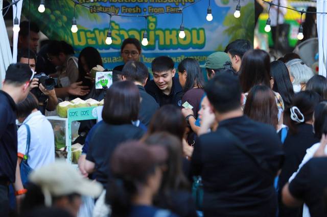 นางอัญชลี สุวจิตตานนท์ อธิบดีกรมส่งเสริมการเกษตร เปิดเผยว่า การจัดกิจกรรมในครั้งนี้มีเป้าหมายเพื่อช่วยเกษตรกรระบายผลผลิต เพิ่มช่องทางการจำหน่าย และสร้างรายได้ให้แก่เกษตรกรผู้ปลูกมะพร้าวน้ำหอม พร้อมเปิดโอกาสให้ผู้บริโภคได้เลือกซื้อมะพร้าวน้ำหอมสดจากสวน รวมถึงผลิตภัณฑ์แปรรูปจากมะพร้าวคุณภาพดีโดยตรงจากเกษตรกร เช่น วิสาหกิจชุมชนพิทักษ์สาคร หรือ สวนมะพร้าวเดี่ยวบ้านแพ้ว จ.สมุทรสาคร, วิสาหกิจชุมชนผลิตผลไม้ปลอดภัยบ้านรางสีหมอก จาก จ.ราชบุรี สวนมะพร้าวน้ำหอม ส.พรชัย Young Smart Farmer จาก จ.นครปฐม รวมถึงการจัดโปรโมชั่นพิเศษอย่างต่อเนื่อง จำหน่ายมะพร้าวน้ำหอมในราคาพิเศษ เพื่อจูงใจให้ประชาชนร่วมจับจ่ายใช้สอย ซึ่งได้รับความสนใจจากประชาชนและผู้เข้าร่วมงานเป็นจำนวนมาก ส่งผลให้มียอดจำหน่ายมะพร้าวน้ำหอมเฉลี่ยวันละกว่า 2 ตัน สะท้อนถึงความนิยมและความเชื่อมั่นของผู้บริโภคที่มีต่อมะพร้าวน้ำหอมไทย