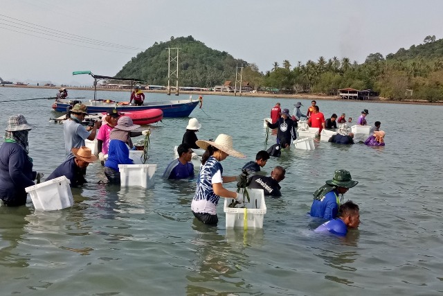 – ด้านหญ้าทะเล ดำเนินการย้ายปลูก เพาะเมล็ด และแยกกอ เพื่อเพิ่มพื้นที่หญ้าทะเลในจุดที่เสื่อมโทรม และฟื้นคืนแหล่งอาหารของสัตว์ทะเลหายาก
