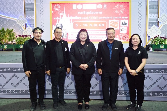 วันที่ 5 กุมภาพันธ์ 2569 สำนักงานการวิจัยแห่งชาติ (วช.) กระทรวงการอุดมศึกษา วิทยาศาสตร์ วิจัยและนวัตกรรม จัดพิธีเปิด “การแสดงโดรนแปรอักษรส่งเสริมการท่องเที่ยว” ภายในงาน “สมโภชศาลหลักเมืองและกาชาดสุราษฎร์ธานี” ประจำปี 2569 โดยมี นายจุมพฏ วรรณฉัตรสิริ ผู้ว่าราชการจังหวัดสุราษฎร์ธานี เป็นประธาน ดร.วิภารัตน์ ดีอ่อง ผู้อำนวยการสำนักงานการวิจัยแห่งชาติ กล่าวสนับสนุนนวัตกรรม นายประเสริฐ บุญประสพ นายกเทศมนตรีนครสุราษฎร์ธานี อาจารย์พิศิษฐ์ มิตรเกื้อกูล นายกสมาคมกีฬาเครื่องบินจำลองและวิทยุบังคับ คณะผู้บริหารในพื้นที่ให้การต้อนรับ ประชาชนในพื้นที่ เข้าร่วมงานอย่างคับคั่ง ณ บริเวณริมเขื่อนแม่น้ำตาปี อำเภอเมืองสุราษฎร์ธานี จังหวัดสุราษฎร์ธานี