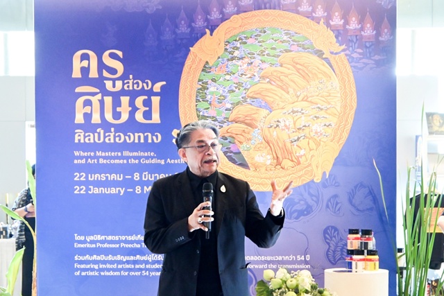 ทั้งนี้ นิทรรศการดังกล่าวเป็นงานจัดแสดงผลงานศิลปะบูรณาการ ที่ถ่ายทอดพลังแห่งการเรียนรู้ และคุณค่าทางวัฒนธรรม ผ่านผลงานของ ศาสตราจารย์เกียรติคุณ ปรีชา เถาทอง ร่วมกับศิลปินรับเชิญ และศิษย์จากหลากหลายรุ่น ซึ่งเป็นผลจากการสั่งสมองค์ความรู้และประสบการณ์ด้านศิลปะยาวนานกว่า 54 ปี สะท้อนบทบาทของ “ครู” ในฐานะผู้นำทางความคิดและแรงบันดาลใจ ที่หล่อหลอมศิษย์ให้เติบโตทั้งในมิติของทักษะ พร้อมสร้างสรรค์ผลงานเพื่อประโยชน์ส่วนรวม