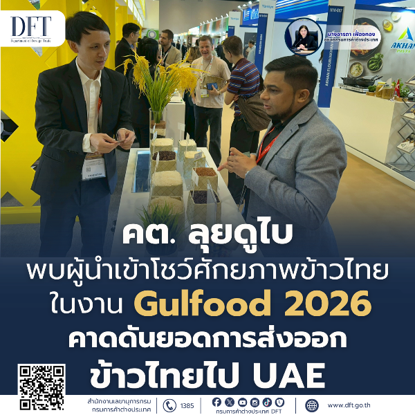 คต. ลุยดูไบ พบผู้นำเข้า โชว์ศักยภาพข้าวไทยในงาน Gulfood 2026 คาดดันยอดการส่งออกข้าวไทยไป UAE