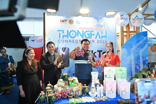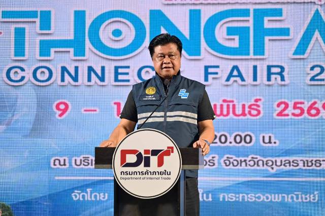 DIT โชว์ผลงาน จัด “มหกรรมธงฟ้าเชื่อมโยงธุรกิจทั่วไทย” (Thongfah Connect Fair 2026) ณ จังหวัดอุบลราชธานี 9-11 ก.พ.69 นอกจากขนสินค้าราคาประหยัดมาจำหน่ายแล้ว ยังขยายบทบาทช่วย “ร้านค้าธงฟ้า” ในพื้นที่และใกล้เคียง ได้ซื้อสินค้ากับผู้ผลิตโดยตรงในงานเพื่อนำกลับไปจำหน่ายที่ร้าน พร้อมนำคณะนักธุรกิจจาก สปป.ลาว มา Business Matching ผลวันแรก ทำสัญญา 14 คู่ มูลค่ารวม 1,067,372,000 บาท ส่วนใหญ่เป็นสินค้าเกษตร ปัจจัยทางการเกษตร และสินค้าอุปโภคบริโภคไทย โดยผู้ค้าลาวพร้อมซื้อสินค้าไทยเพิ่มต่อเนื่อง