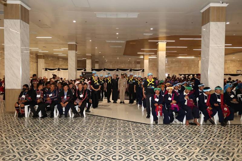 ภายหลังพิธีถวายบังคม พม. ได้จัดกิจกรรมต้อนรับคณะกลุ่มชาติพันธุ์ ณ หอประชุมมหาวิทยาลัยธรรมศาสตร์ ท่าพระจันทร์ โดย นางสาวแรมรุ้ง วรวัธ อธิบดีกรมพัฒนาสังคมและสวัสดิการ กล่าวต้อนรับและแสดงความชื่นชมต่อพี่น้องกลุ่มชาติพันธุ์จากทั่วประเทศ ที่ร่วมแสดงพลังความสามัคคีและความจงรักภักดี พร้อมย้ำถึงบทบาทของกระทรวงการพัฒนาสังคมและความมั่นคงของมนุษย์ ในการเป็นกลไกหลักด้านนโยบายและการบูรณาการความร่วมมือ เพื่อคุ้มครองสิทธิ ส่งเสริมศักดิ์ศรีความเป็นมนุษย์ และพัฒนาคุณภาพชีวิตของกลุ่มชาติพันธุ์อย่างต่อเนื่องและยั่งยืน
