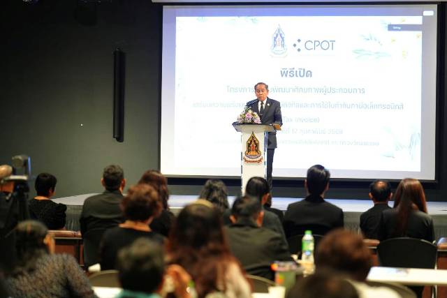 สำหรับการอบรมในครั้งนี้ กระทรวงวัฒนธรรมได้จัดให้มีการถ่ายทอดความรู้โดยผู้เชี่ยวชาญจากกรมสรรพากร เพื่อเสริมสร้างศักยภาพและความเข้าใจที่ถูกต้องแก่ผู้ประกอบการ CPOT โดยครอบคลุมทั้งการจดทะเบียนภาษีดิจิทัล การตรวจสอบข้อกฎหมายที่เกี่ยวข้อง ตลอดจนเทคนิคการออกใบกำกับภาษีอิเล็กทรอนิกส์อย่างมืออาชีพ เพื่อให้ผู้ประกอบการสามารถนำไปปรับใช้ได้จริงในธุรกิจของตนเอง