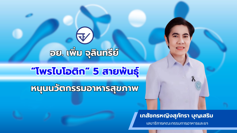 อย. ขานรับเทรนด์สุขภาพเชิงป้องกัน ประกาศเพิ่มรายชื่อจุลินทรีย์โพรไบโอติกอีก 5 สายพันธุ์ที่มีงานวิจัยรองรับระดับสากล ผู้ประกอบการสามารถนำไปใช้พัฒนาผลิตภัณฑ์ใหม่ได้ทันที พร้อมดันไทยสู่ผู้นำเศรษฐกิจสีเขียวด้วยนวัตกรรมอาหารปลอดภัย