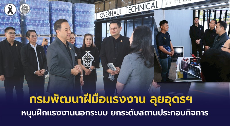 เมื่อวันที่ 12 กุมภาพันธ์ 2569 นายสมาสภ์ ปัทมะสุคนธ์ อธิบดีกรมพัฒนาฝีมือแรงงาน พร้อมคณะผู้บริหาร ลงพื้นที่จังหวัดอุดรธานี พบปะผู้ประกอบการและผู้ผ่านการฝึกอบรมตามโครงการเพิ่มทักษะแรงงานอิสระและกลุ่มเป้าหมายเฉพาะ เพื่อส่งเสริมแรงงานนอกระบบให้มีทักษะที่ได้มาตรฐาน สามารถประกอบอาชีพได้อย่างมั่นคง และเชื่อมโยงกับสถานประกอบกิจการที่มีมาตรฐาน