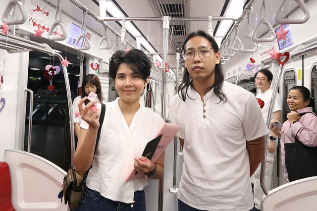 ท้้งนี้ คู่รักทุกคู่ยังได้ร่วมกิจกรรมสอยดาวภายในขบวนรถไฟฟ้าเพื่อลุ้นของรางวัลมากมาย โดยรางวัลใหญ่ได้แก่ทะเบียนสมรสทองคำ นอกจากนี้ภายในงานยังมีกิจกรรมบันเทิงมากมาย อาทิ Mini Concert จาก ตุ๊กตา The Voice พูดคุยกับคู่รักดารา เจ้าบ่าวป้ายแดง แอนด์ดรูว์ โคนินทร์ ดีเจสอง ซินแสโต๋ รวมถึงภายในงานยังมีบริการอาหาร เครื่องดื่มแบบจัดเต็ม โดยการเฉลิมฉลองในครั้งนี้ไม่เพียงแต่เป็นการจดทะเบียนสมรสในวันวาเลนไทน์เท่านั้น แต่ยังเป็นการแสดงถึงพลังแห่งความรักและการเคารพในความหลากหลายของมนุษย์ โดยรถไฟฟ้าชานเมืองสายสีแดง รู้สึกยินดีที่ได้มีโอกาสเป็นส่วนหนึ่งในการสร้างวันแห่งความประทับใจอันแสนพิเศษไปพร้อมกับคู่รักทั้ง 30 คู่ และหวังเป็นอย่างยิ่งว่าทุกคู่รักจะได้เริ่มต้นความสุขไปด้วยกันอย่างมั่นคง และเป็นความรักที่ยั่งยืนตลอดไป