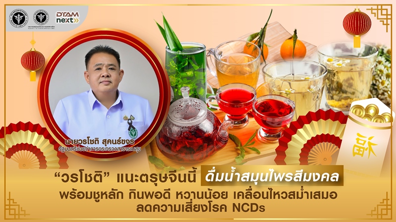 วรโชติ รัฐมนตรีช่วยว่าการกระทรวงสาธารณสุข ห่วงใยสุขภาพประชาชนช่วงเทศกาลตรุษจีน แนะเลือกดื่ม “น้ำสมุนไพรสีมงคล” เช่น น้ำกระเจี๊ยบ น้ำขิง น้ำเก๊กฮวย น้ำใบเตย น้ำส้มจี๊ด รวมถึง การดื่มชาจีน เช่น ชาอู่หลง หรือชาผู่เอ๋อร์ แทนเครื่องดื่มรสหวาน ช่วยย่อย ลดไขมัน เสริมสิริมงคล พร้อมชูหลัก “กินพอดี ดื่มพอเหมาะ เคลื่อนไหวสม่ำเสมอ” ห่างไกลโรคไม่ติดต่อเรื้อรัง (NCDs)